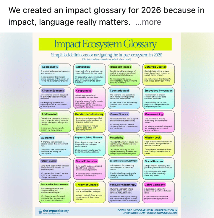 We just launched an impact ecosystem glossary with a simple reason behind it: If you can’t name what you’re doing, it’s much harder to scale it.