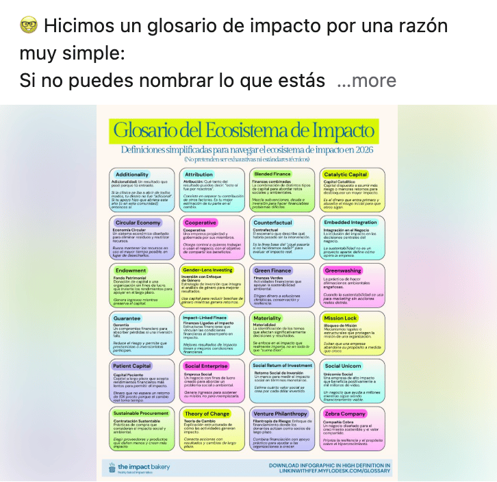 También dejamos descargable nuestra primera infografía para navegar el financiamiento de impacto —grants, capital concesional, blended y comercial— y entender cuándo sí y cuándo no hace sentido cada uno.